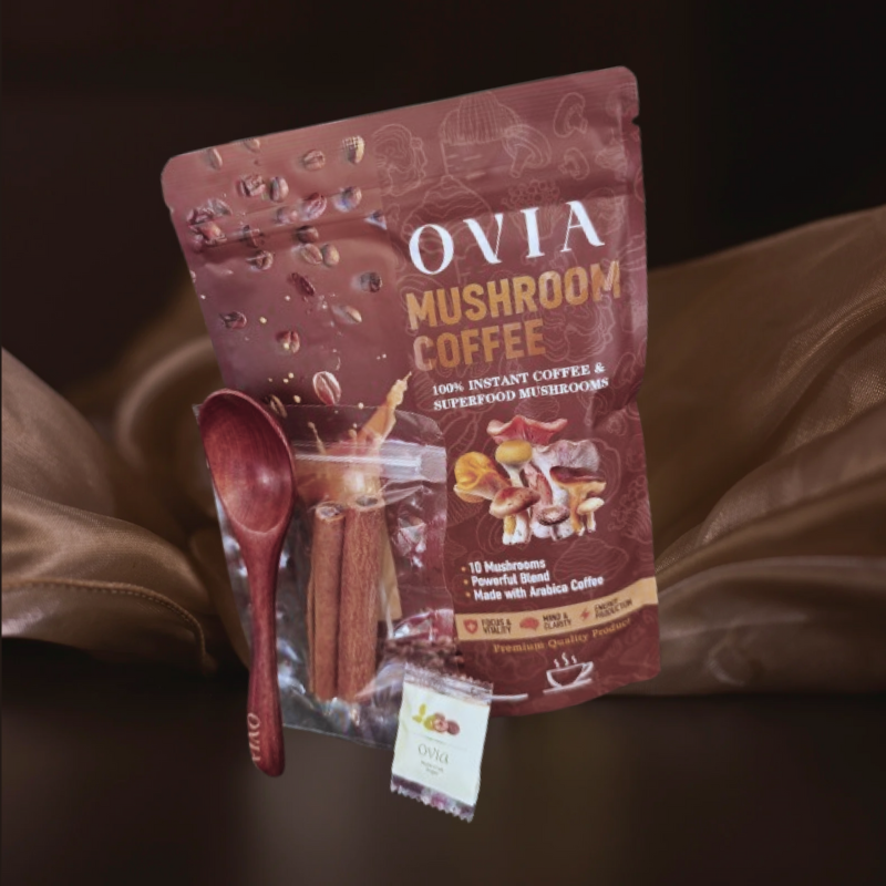 Combining Arabica coffee with mushrooms like Maca and Shiitake, OVIA Mushroom Coffee delivers smooth energy, mental endurance, and brain support. Enjoy it as a daily coffee replacement or an alternative to traditional instant mushroom coffee.